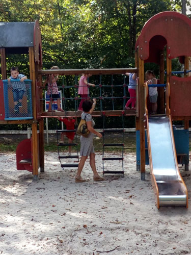 Mercredi, nous sommes allés au parc avec Madame Fabienne et Madame Nono profiter des derniers jours de beau temps pour aller jouer à la plaine de jeux et ramasser des marrons...