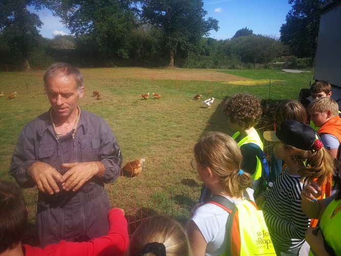 Une fois arrivés, Daniel a sensibilisé les enfants à l’agriculture bio, aux produits locaux, à l’écologie, aux marches pour le climat, … à ses convictions en temps qu’agriculteur bio !