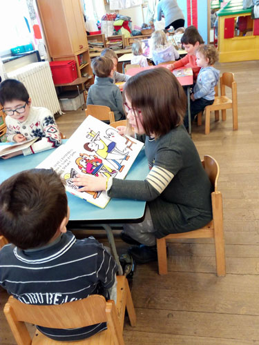 Nous sommes allés acheter de la terre à l'atelier des Gad'lis en dessous de l'école et nous avons été invités par les dames à découvrir leur travail et à visiter les lieux. Nous avons beaucoup discuté et découvert des tas de choses très intéressantes! C'était super enrichissant.