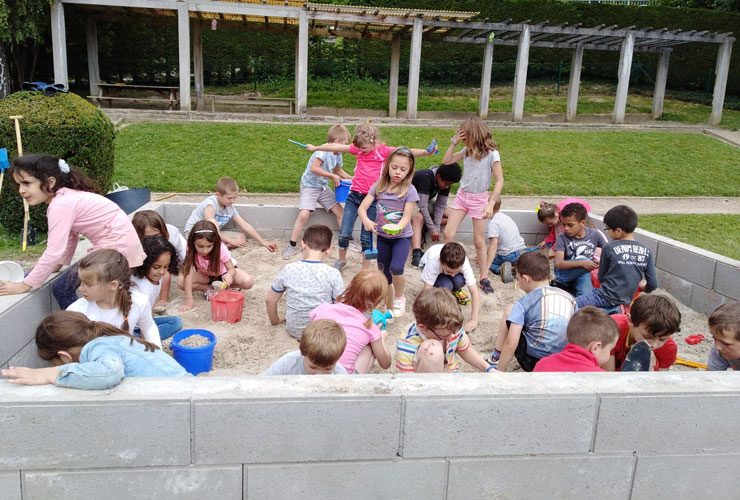 La classe de 2ème année a nettoyé le nouveau bac à sable et a même eu le temps d'en profiter !