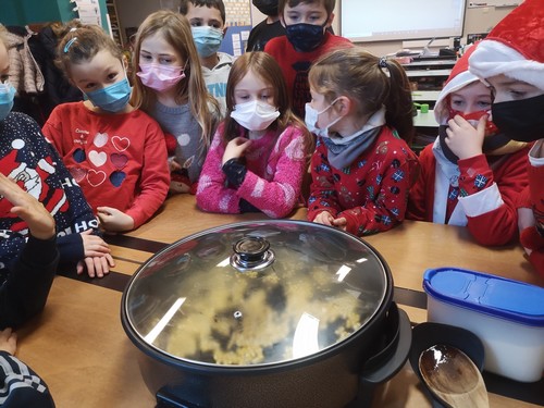 Atelier d'écriture d'une recette en cuisinant des popcorns.